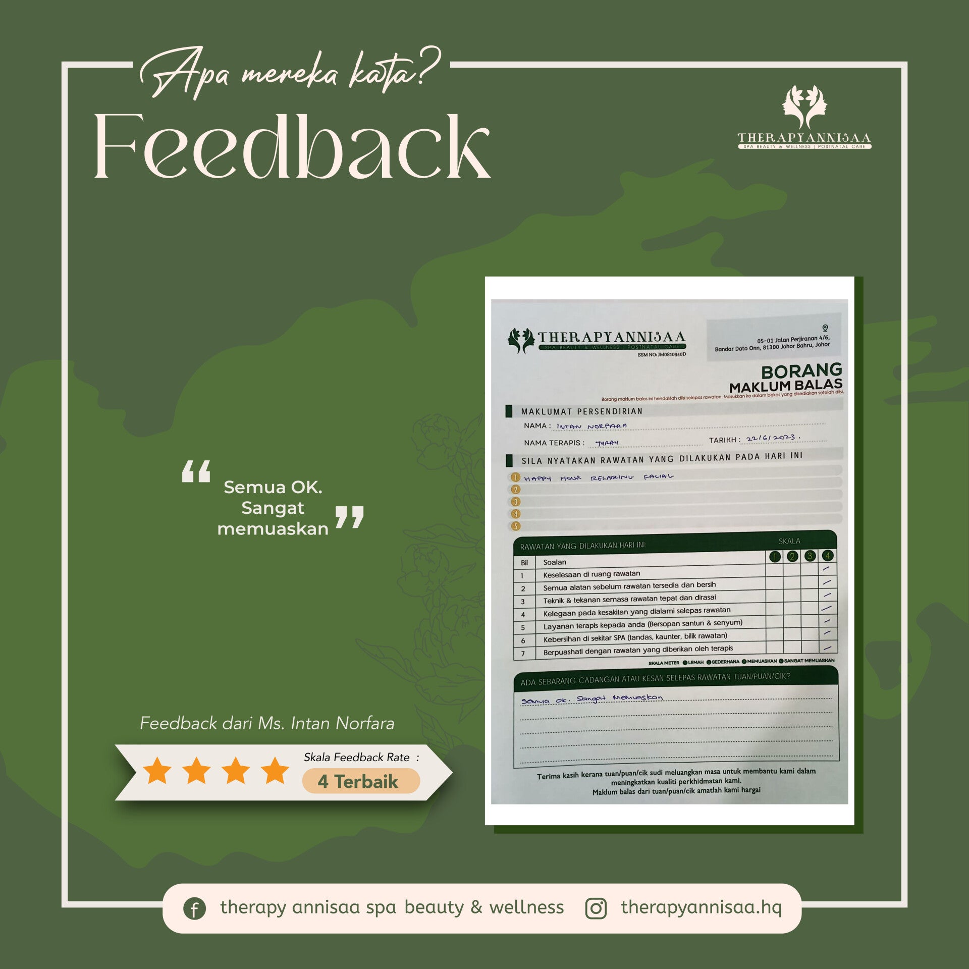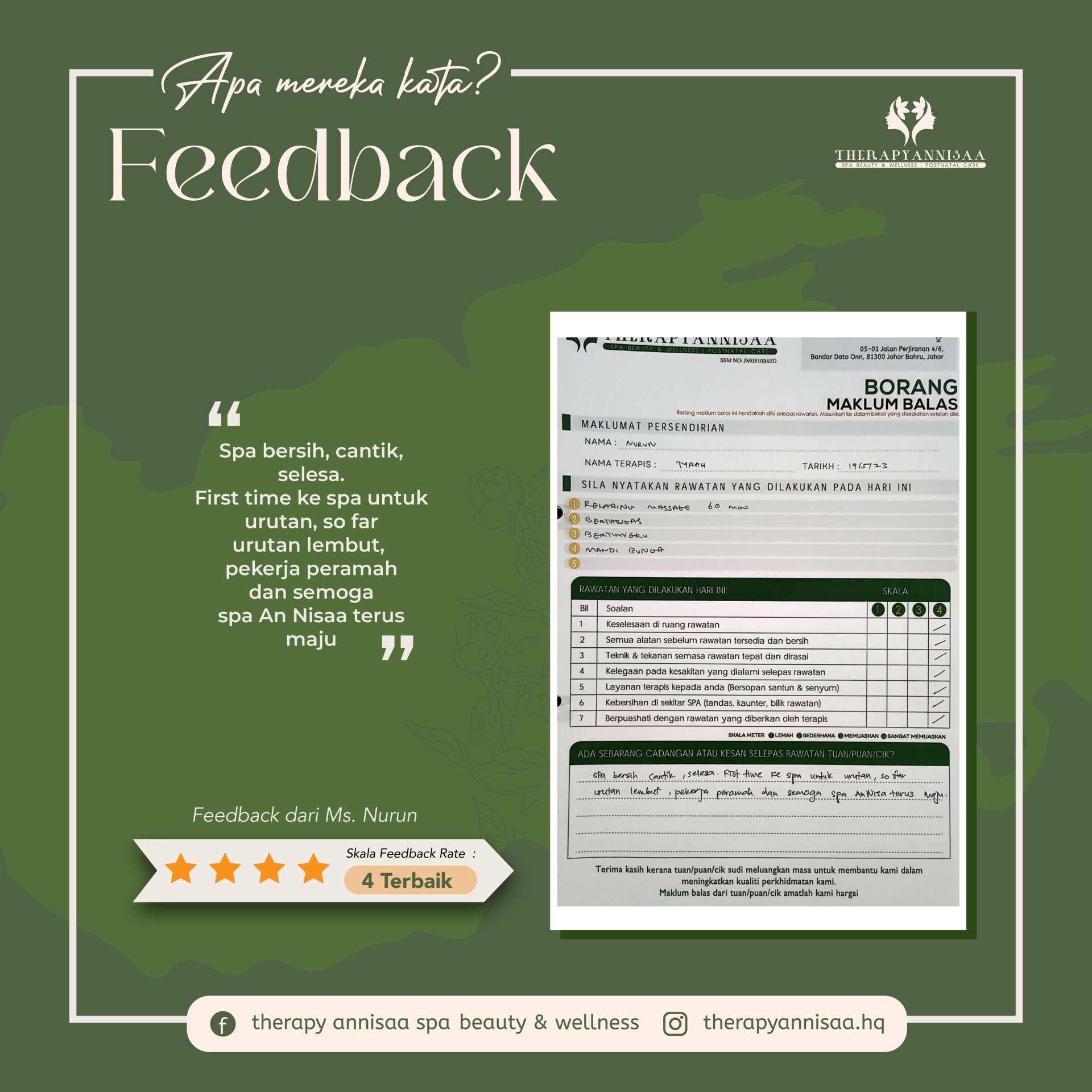 Di Therapy An Nisaa kami mementingkan kualiti dari kuantiti.